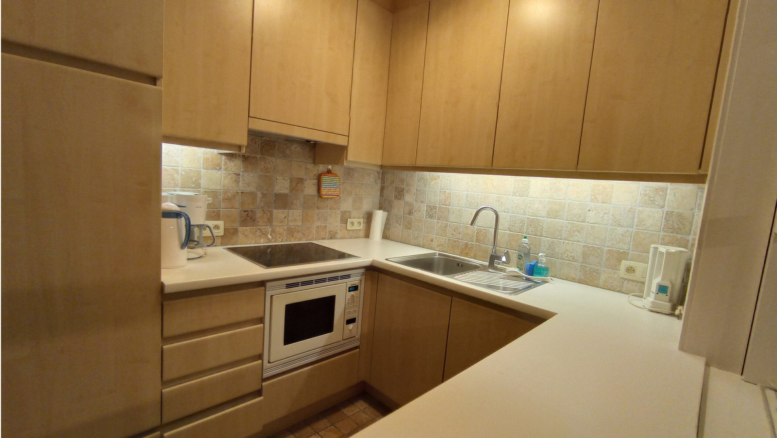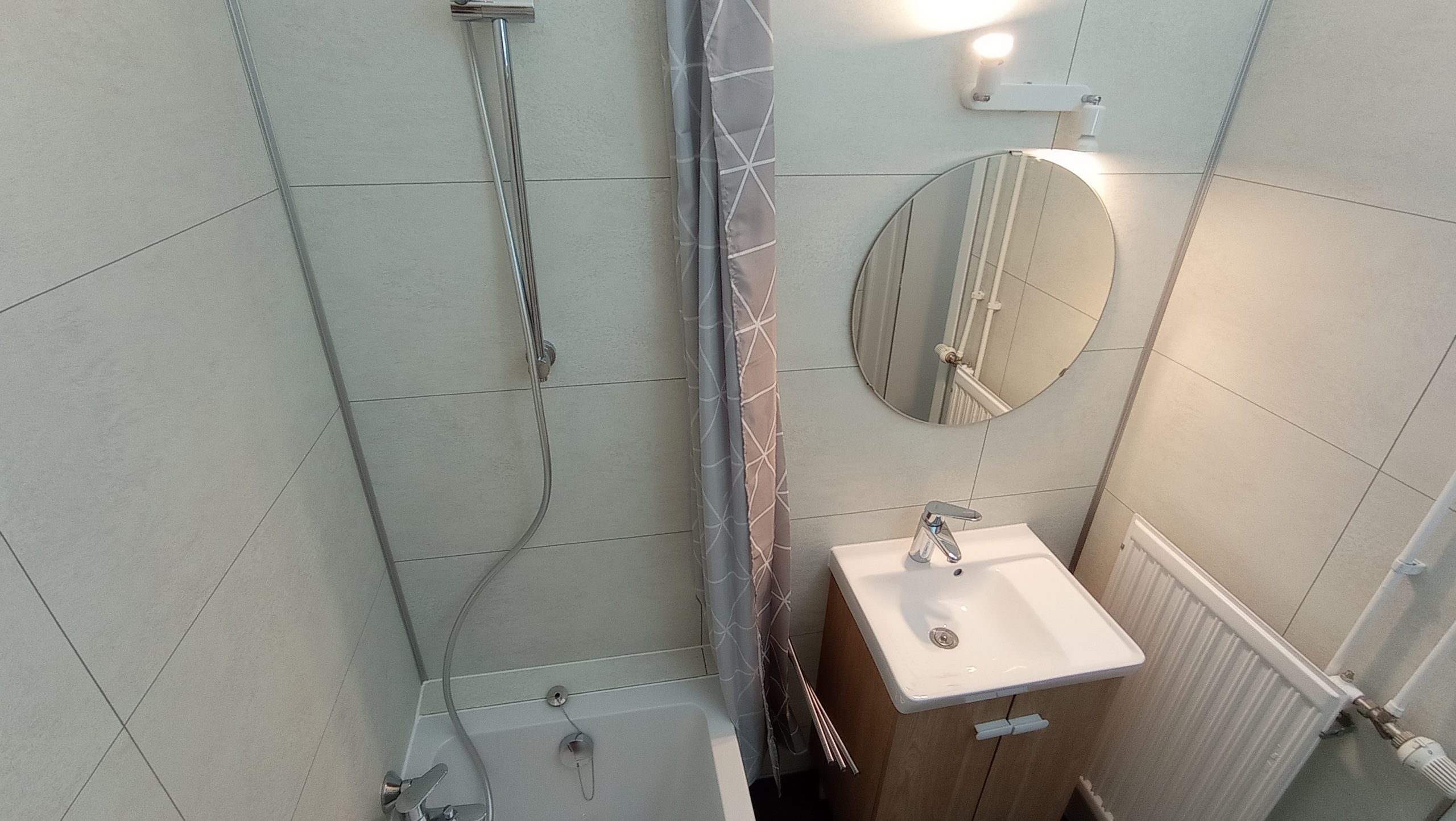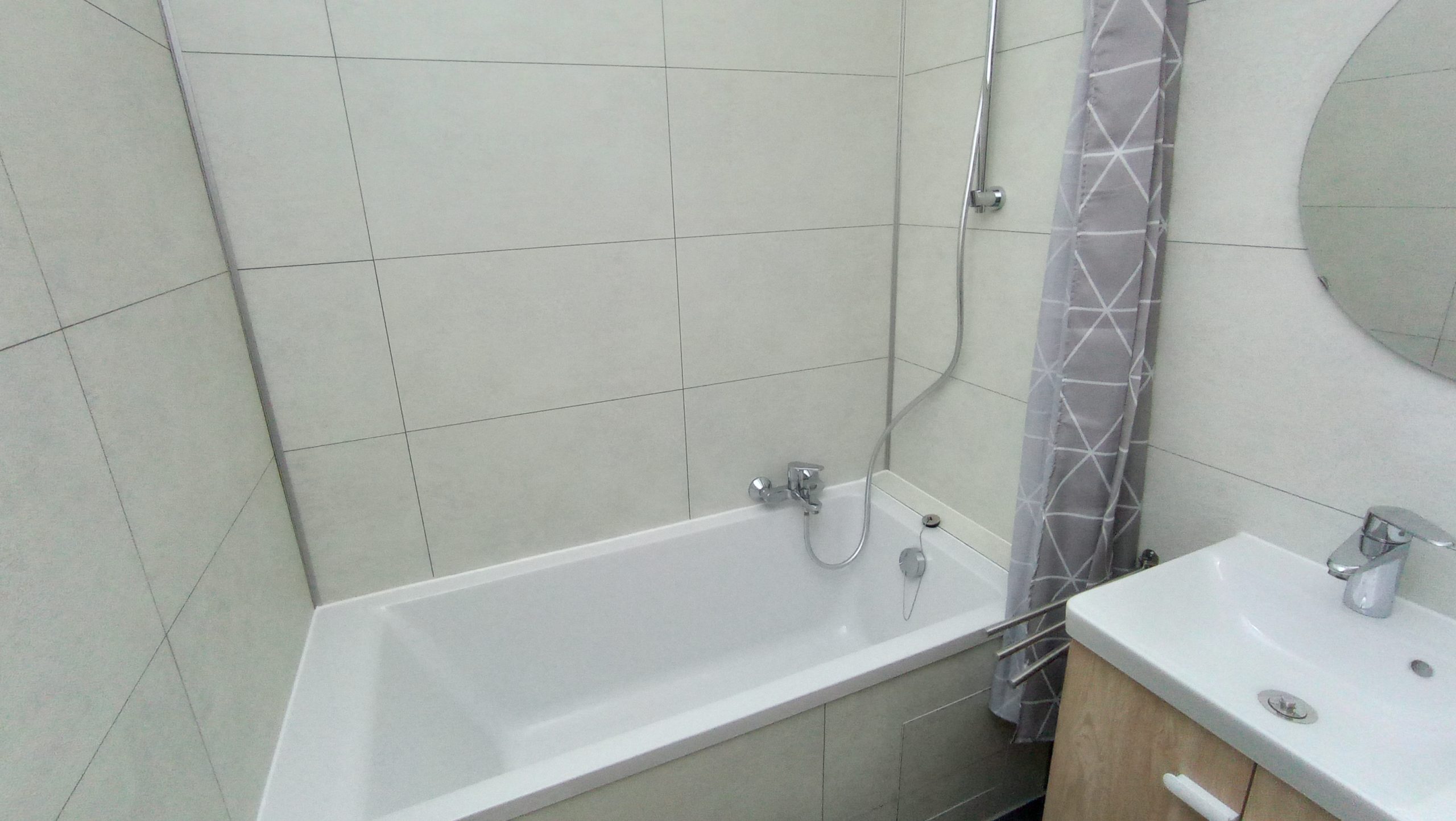 L’appartement dispose d’une cuisine bien équipée, d’une salle de bain avec une baignoire – douche avec rideau, WC séparé, deux des chambres possèdent également un évier. Revêtement de sol en vinyle et parquet.